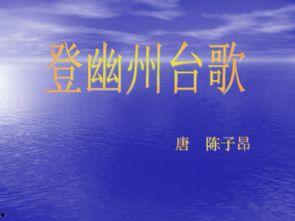 亲爱的读者们,你是否曾在某个午后,静静地坐在窗前,听着窗外的风声,心中涌起一股对历史的向往?今天,就让我们一起走进历史的长河,探寻那古老的幽州台,感受那穿越千年的文化韵味。而要深入了解这段历史,一部精心制作的教学视频《登幽州台歌》绝对不容错过。
