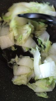 - 加入白菜丝,翻炒均匀。